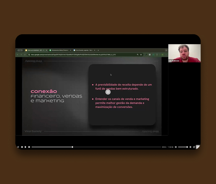 O Vinci Track é um programa intensivo de três meses criado para fundadores e empresários que desejam transformar suas empresas em marcas fortes, desejadas e com receita previsível. Ele combina branding, marketing e estratégia comercial em um mesmo método, unindo o posicionamento de marca à geração de demanda e monetização.